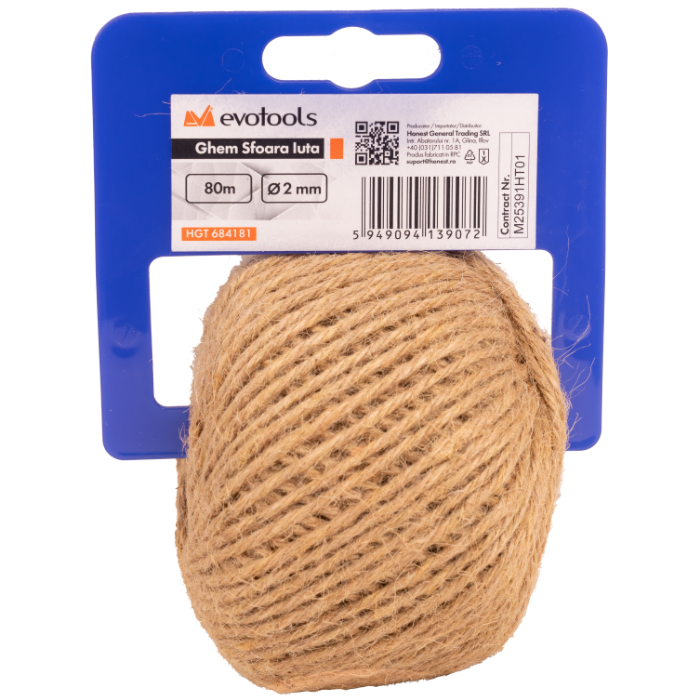 | Descripción: | Ovillo de Cordel de Yute EvoTools® / G[g]: ~150; G[mm]: 2 |