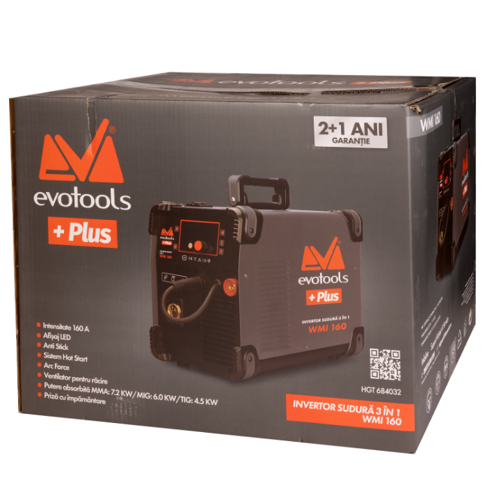 Amplíe su capacidad de trabajo con el inversor de soldadura EvoTools +Plus® WMI 160, un equipo digital robusto diseñado para un alto rendimiento. Este equipo "3 in 1" integra los procesos de soldadura MMA, MIG/MAG (con la posibilidad de utilizar hilo autoprotegido FCAW - No Gas) y TIG Lift, ofreciendo la flexibilidad necesaria para trabajar con una amplia variedad de materiales y espesores.