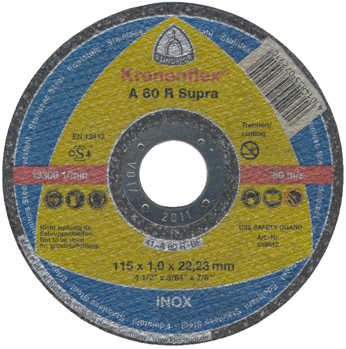 Monte el disco abrasivo con el lado que presenta el aro metálico hacia el interior; esto evita que el disco se bloquee / se pegue en el eje!