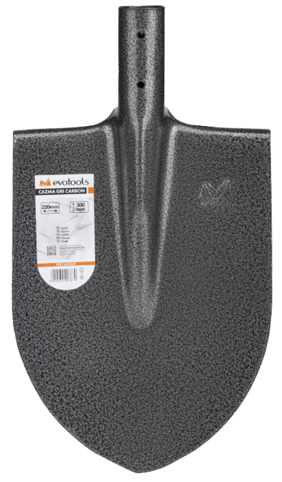 Este tipo de pala de punta tiene una hoja de acero al carbono Mn 65 de alta calidad, tratada térmicamente, prensada en caliente y protegida con pintura electrostática, lo que garantiza gran dureza durante el uso y resistencia a los choques mecánicos. La bocina enrollada es cónica para un buen ajuste con el mango, con la unión realizada por estampación. Se utiliza para trabajos agrícolas, excavaciones de tierra, etc.