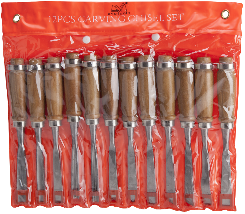Este juego de formones EvoTools® para talla contiene 12 piezas y es de gran ayuda cuando desea trabajar superficies de madera. La parte activa está fabricada en acero al carbono y el mango es de madera dura, con superficie acabada y lacada.