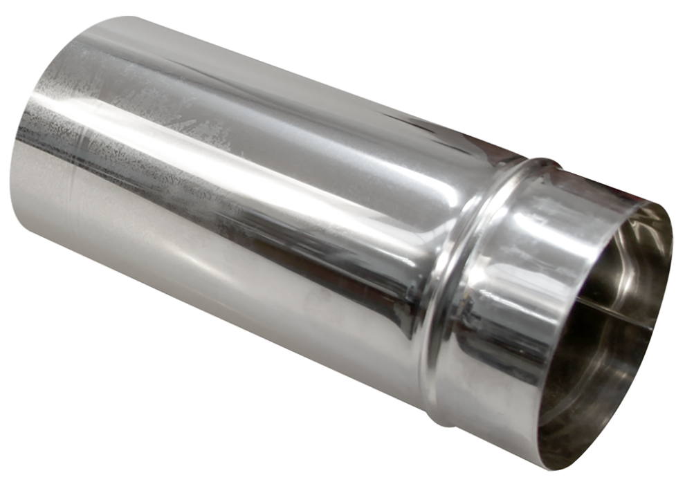 Tubo (burlán) de alta calidad para conectar chimeneas y estufas de leña y evacuar el humo. Fabricado en chapa de acero inoxidable con gran espesor, 0.4 mm, para mayor resistencia y seguridad durante la evacuación.