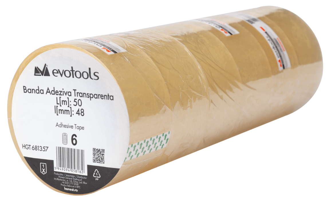 Cinta adhesiva con soporte de PP transparente o marrón, con adhesivo de caucho sintético.