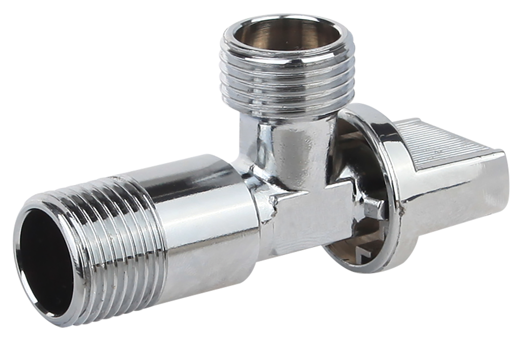 La válvula tiene cuerpo de latón con superficie cromada, resistente a la corrosión. La esfera de trabajo también es de latón, pulida y cromada.