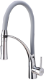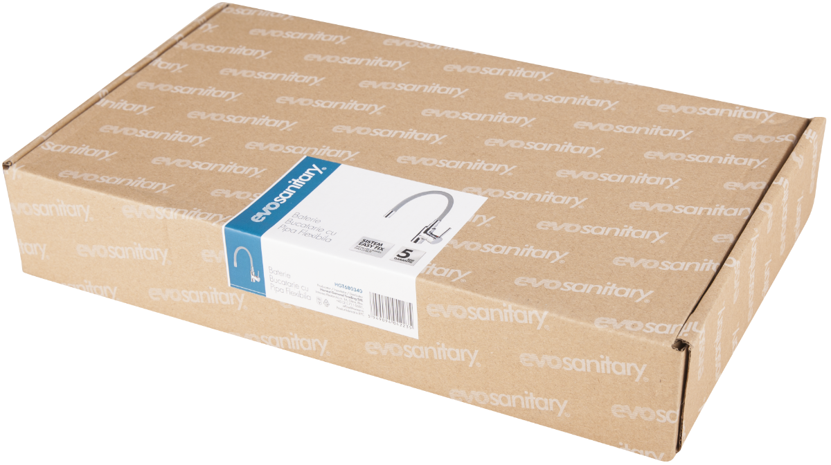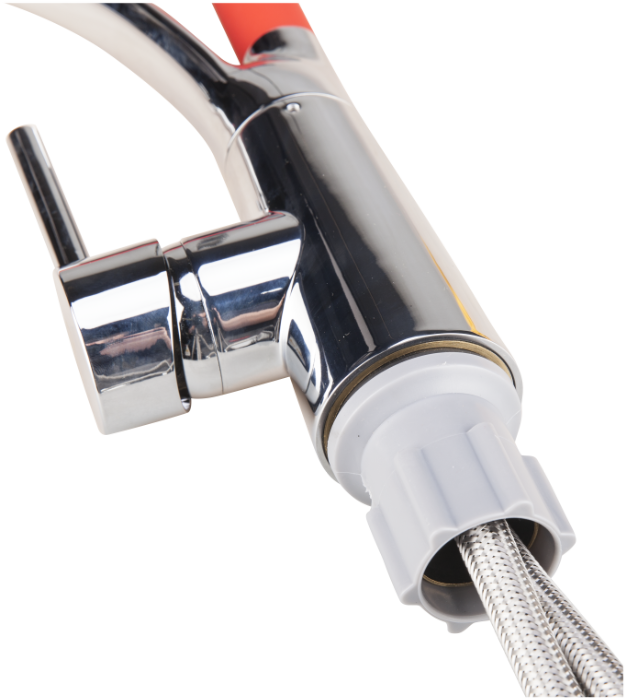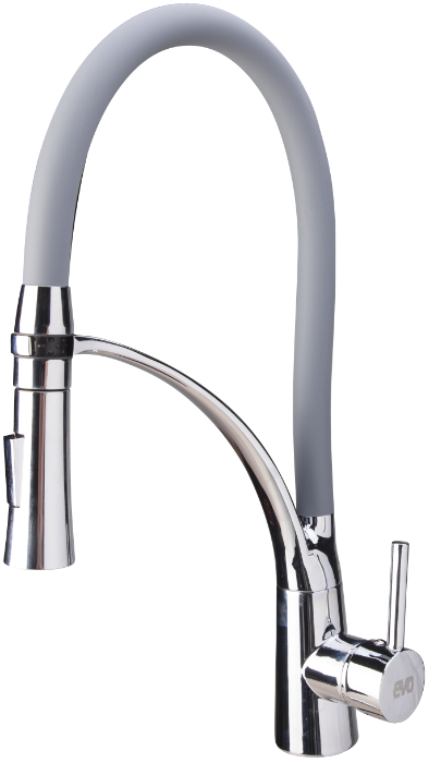 El grifo de cocina tiene un caño tipo cuello de cisne, el cual es flexible con una movilidad aumentada y fácil de manejar. El caño está recubierto con una capa de silicona y tiene una longitud de 490 mm.Está provisto de un soporte de fijación para fijar el caño.