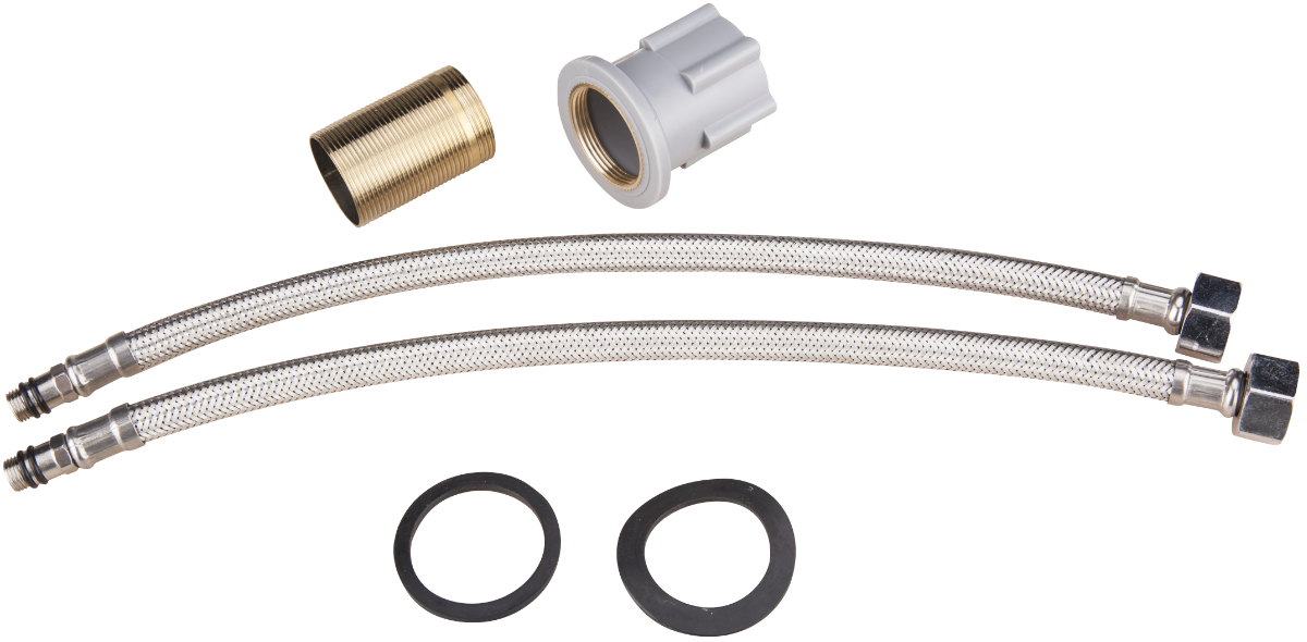 El grifo es monomando, con una sola palanca para regular la temperatura del agua ,con cuerpo de latón.Está equipado con un cartucho cerámico de 35 mm y 2 mangueras flexibles de 350 mm.